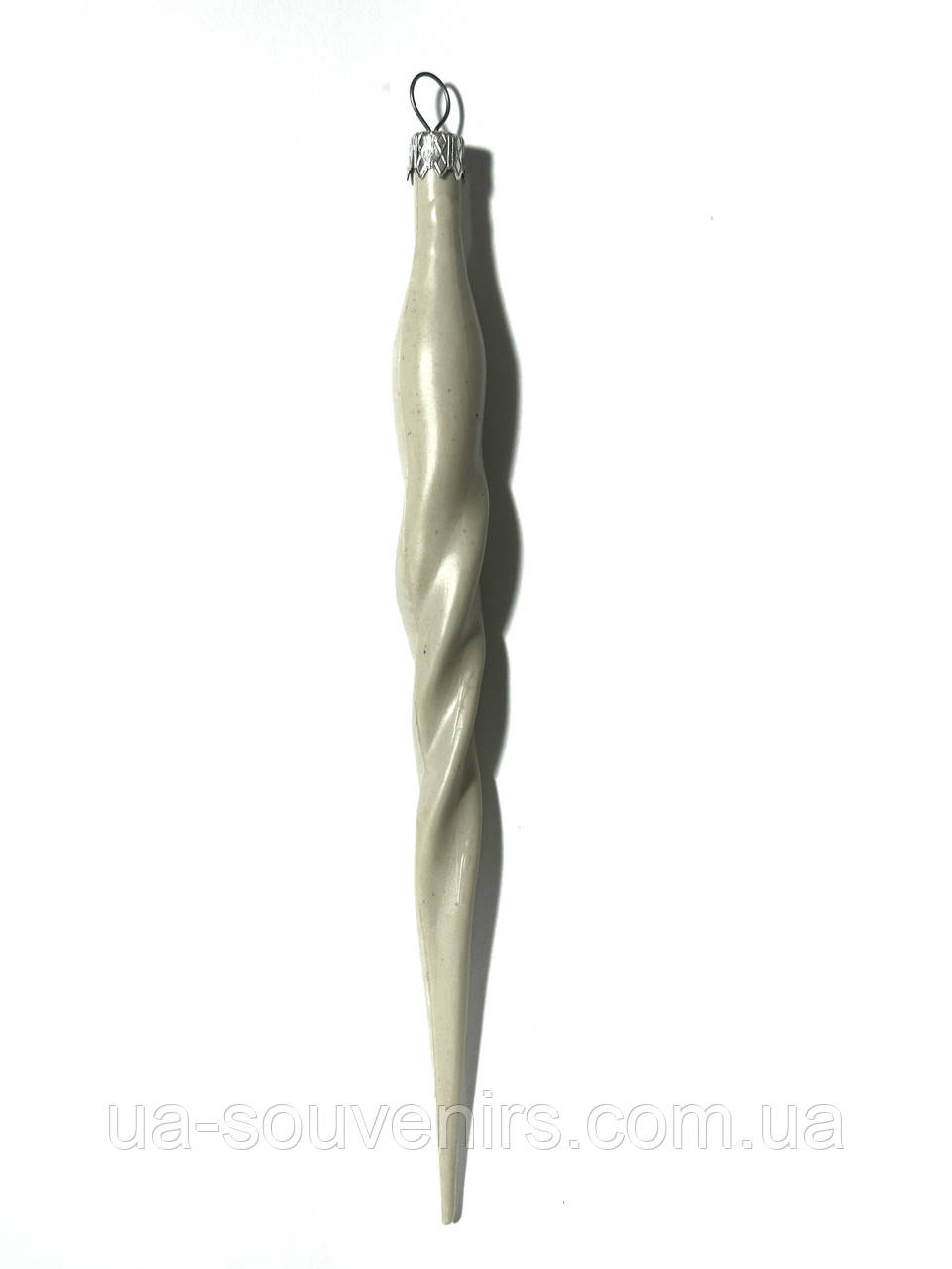 Ця пластикова заготовка у формі тонкої бурульки (борульки) висотою 6 см підходить для творчості та новорічного декупажу. Виріб порожній і має гладку поверхню, що робить його зручним для різних технік декорування, таких як розпис, декупаж та інші види оздоблення.