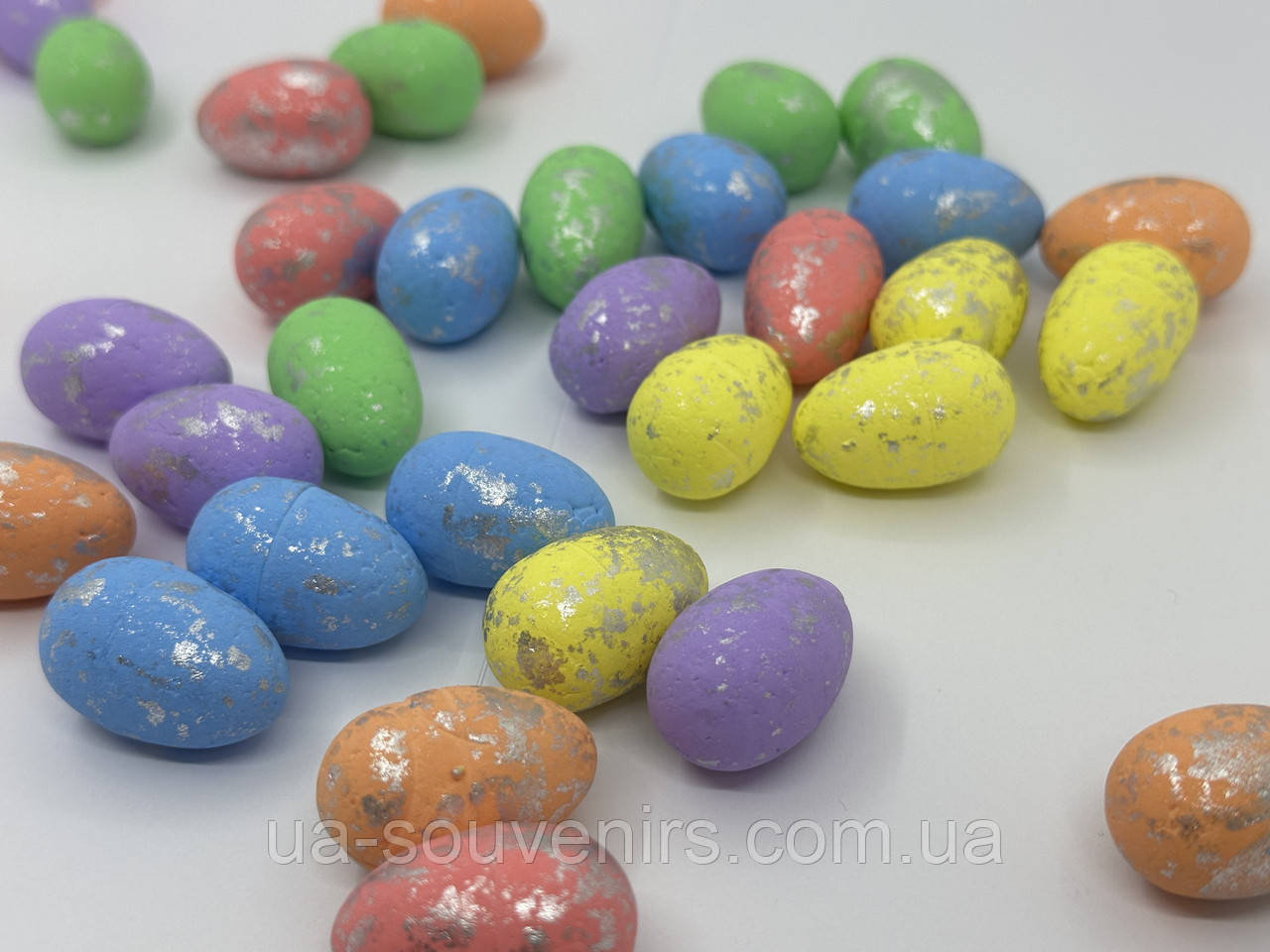 Декор пасхальний з пінопласту "Яйце" 2.5 см мікс з срібним вкрапленням , 50 шт